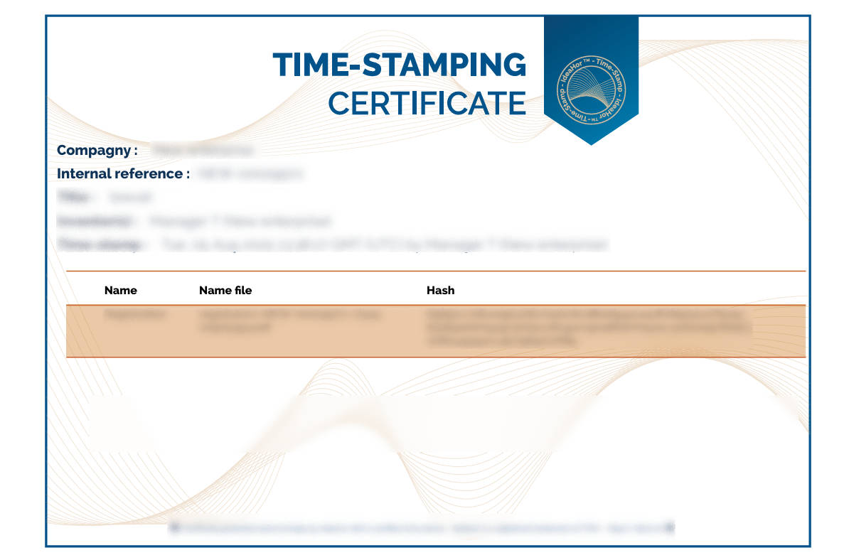 Un certificat horodaté est généré et stocké dans un historique infalsifiable. L’utilisateur ne doit rien faire de plus : la preuve est infalsifiable, traçable et opposable si nécessaire. Ce socle de protection intervient très tôt dans le cycle d’innovation — avant qu’il ne soit trop tard.