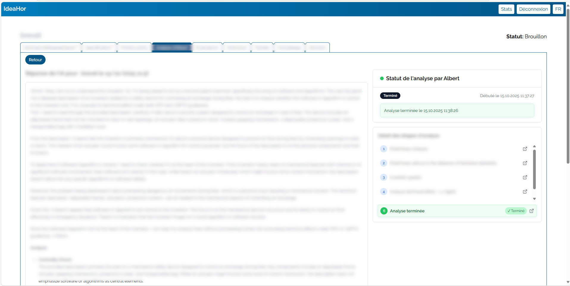 Albert intervient dès la saisie pour renforcer la qualité des descriptions. Il identifie les imprécisions, propose des ajouts pertinents et suggère des reformulations qui améliorent la compréhension et le potentiel PI.