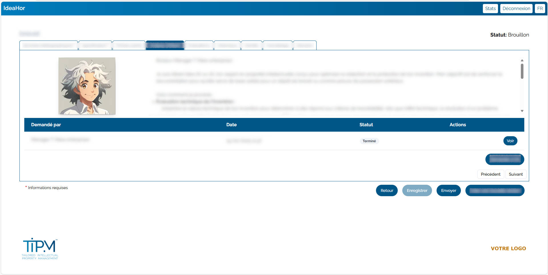 Une idée bien structurée et enrichie prépare directement le terrain pour une protection efficace. Grâce aux descriptions améliorées et à l’historique clair, le dossier présenté à un conseil PI ou un mandataire est complet, compréhensible et exploitable.